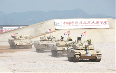 當(dāng)日,第十二屆中國國際航空航天博覽會在珠海舉行。中國兵器工業(yè)集團(tuán)舉行裝甲突擊裝備動態(tài)展示活動。