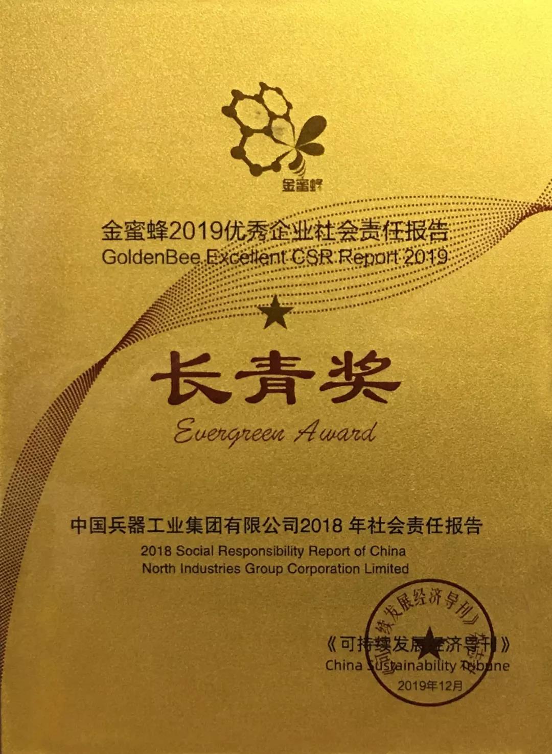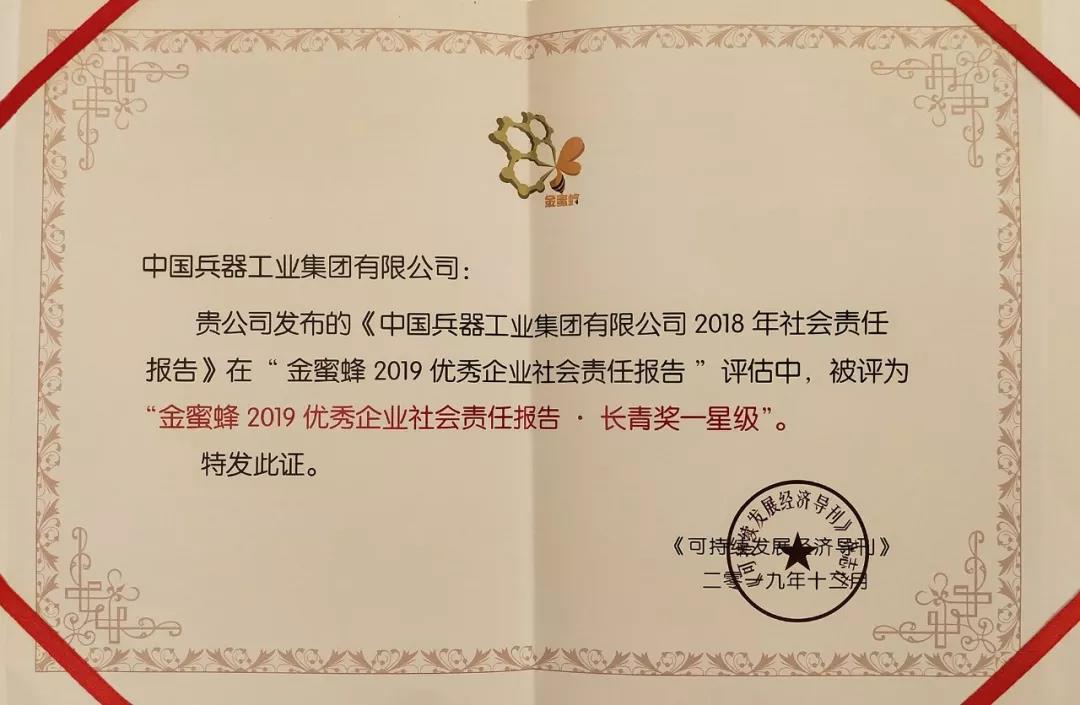 12月5日,在第十二屆中國企業(yè)社會責(zé)任報(bào)告國際研討會發(fā)布的“金蜜蜂2019優(yōu)秀企業(yè)社會責(zé)任報(bào)告榜”上,《中國兵器工業(yè)集團(tuán)有限公司2018年社會責(zé)任報(bào)告》從近1600份報(bào)告中脫穎而出,連續(xù)第二年榮獲“金蜜蜂優(yōu)秀企業(yè)社會責(zé)任報(bào)告·長青獎”。同時,也是連續(xù)第6年獲得優(yōu)秀企業(yè)社會責(zé)任報(bào)告獎項(xiàng)。
