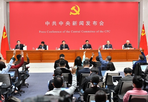 10月30日,中共中央在北京舉行新聞發(fā)布會(huì),介紹黨的十九屆五中全會(huì)精神,并答記者問。 新華社記者 李鑫 攝