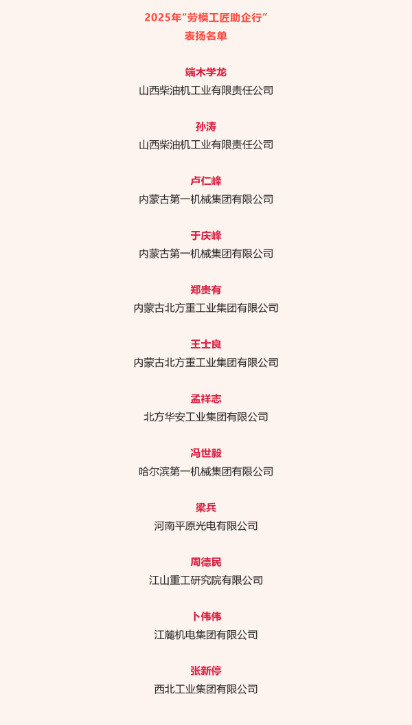 兵器工業集團12名勞模工匠入選“勞模工匠助企行”表揚名單 |